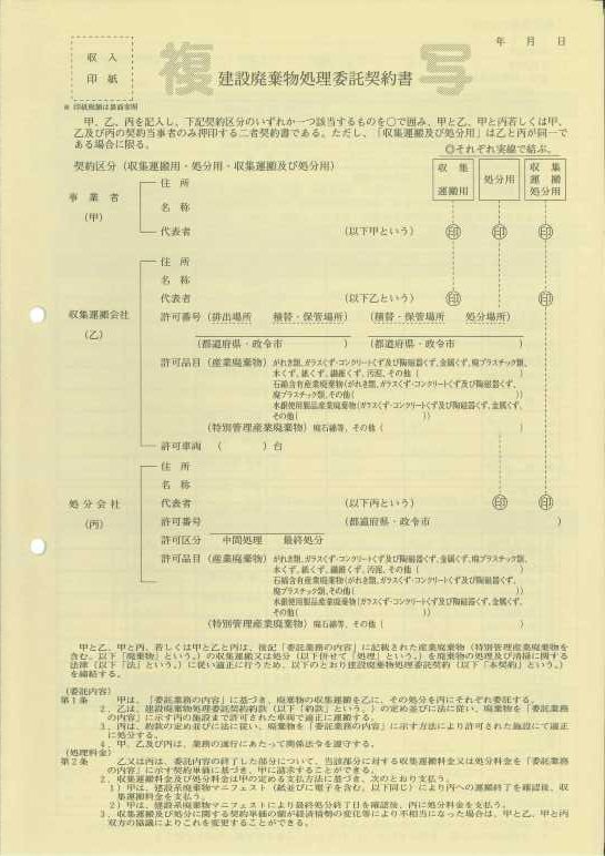 2025.10.08 建設廃棄物処理委託契約書を販売しています 建設廃棄物処理委託契約書(黄色A3二つ折り)を販売しています。ご購入については下記をご確認ください。 【見本】コチラをご覧ください【価格】1部(5枚入) 330円【お申込方法】・協会窓口販売(平日9:00~17:00)・協会HPからのWEB注文(送料別途)